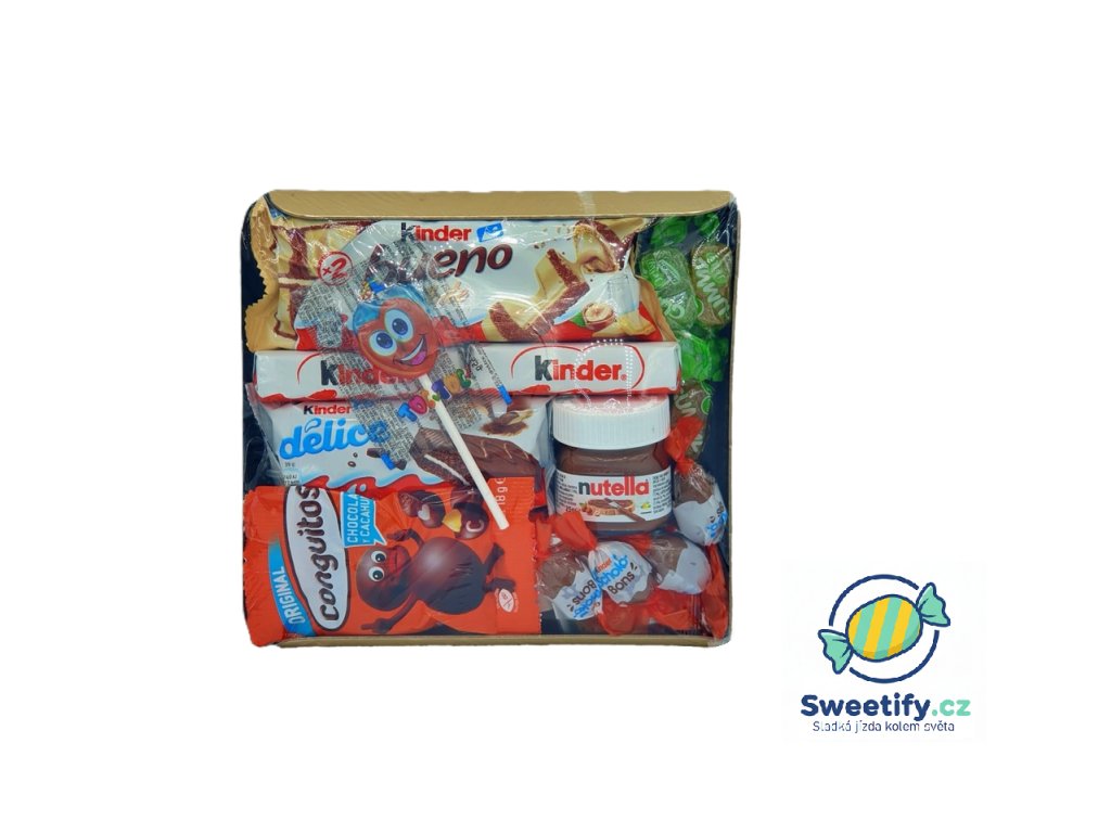 Najdete v něm výběr oblíbených značek a sladkostí, které má rád skoro každý. Díky elegantnímu zlatému tácku působí dárek luxusně a není potřeba žádné další balení. Skvěle se hodí jako dárek k narozeninám, svatbě, křtinám, prvnímu svatému přijímání nebo jen jako milá pozornost pro někoho blízkého.