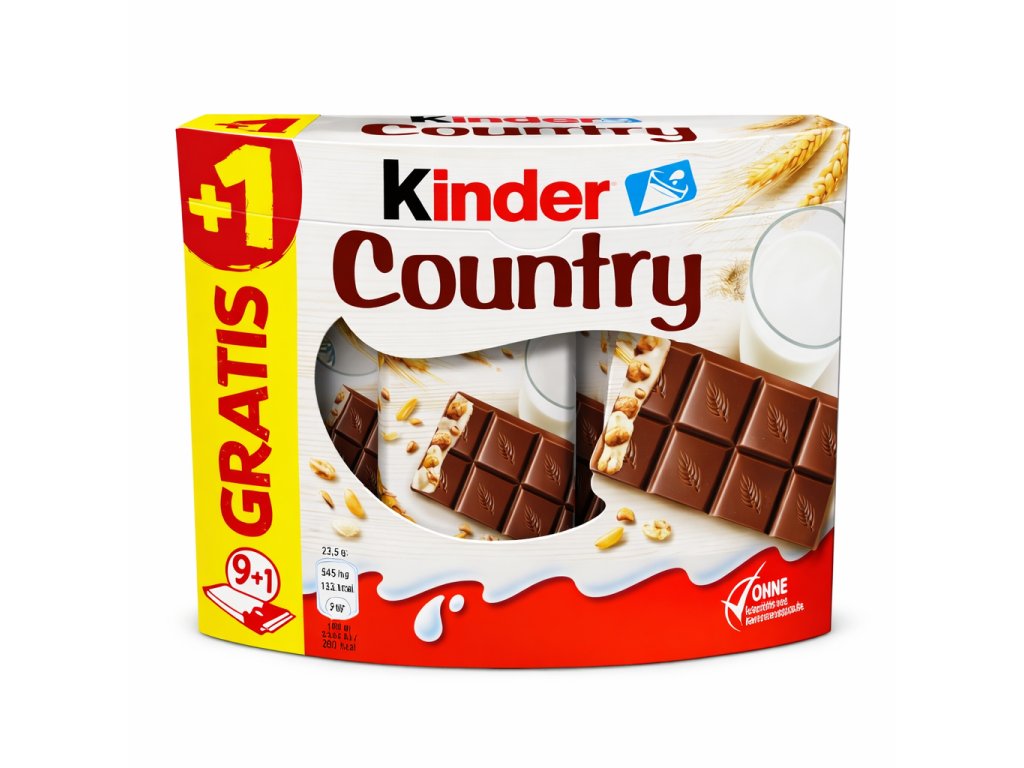 Mléčná čokoláda 33,5 % (cukr, kakaové máslo, kakaová hmota, PLNOTUČNÉ MLÉKO v prášku, emulgátor: lecitiny (SÓJA), aroma), cukr, ODSTŘEDĚNÉ MLÉKO v prášku (18 %), rostlinné tuky (palmový, shea), cereálie 7,5 % (ječmen, rýže, PŠENICE, špalda), MLÉČNÝ tuk, emulgátor: lecitiny (SÓJA), aroma (vanilin).