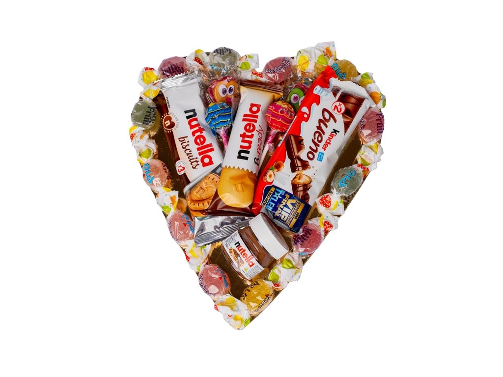 Valentýnské čokoládové srdce Nutella, Kinder a Chupa Chups